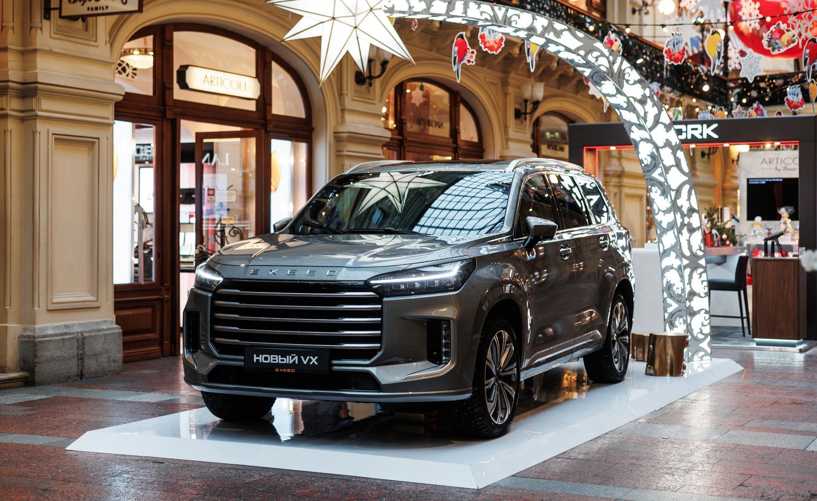 Еще одной точкой притяжения стала праздничная экспозиция нового премиального внедорожника EXEED VX на центральной аллее ГУМа. Прогрессивный и технологичный автомобиль стал еще совершеннее, а его роскошный салон со множеством зимних опций готов согреть даже в суровые холода. К тому же впечатляющий простор салона EXEED VX позволит с комфортом разместить всех пассажиров, оставив место для коньков, санок, лыж, а также любой необходимой экипировки. Отличительной чертой EXEED VX является его неповторимый дизайн — решетка радиатора автомобиля задает мощный и динамичный стиль, который подчеркивается элегантными хромированными ламелями, а тройной центральный экран в салоне обеспечивает непревзойденный уровень комфорта как водителю, так и пассажиру.
